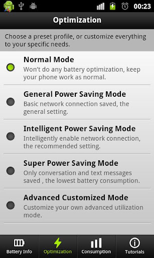 General Saving Mode, it has the basic network control, screen control and the sleep schedule to meet your normal battery saving needs.